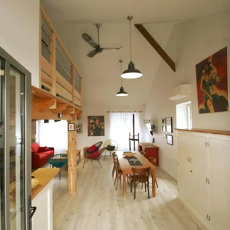 Appartement Atelier l'Hirondelle climatisé est équipé d'une cuisine équipée, complétée avec un four et un lave-vaisselle. L'aéroport de Nantes-Atlantique est situé à 35 km, tandis que l'arrêt de bus Clisson - Gare SNCF est à 700 m de la pièce.